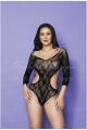 Macacão com Cinta Liga com Renda Floral Preta Costas Vazadas cod-10707