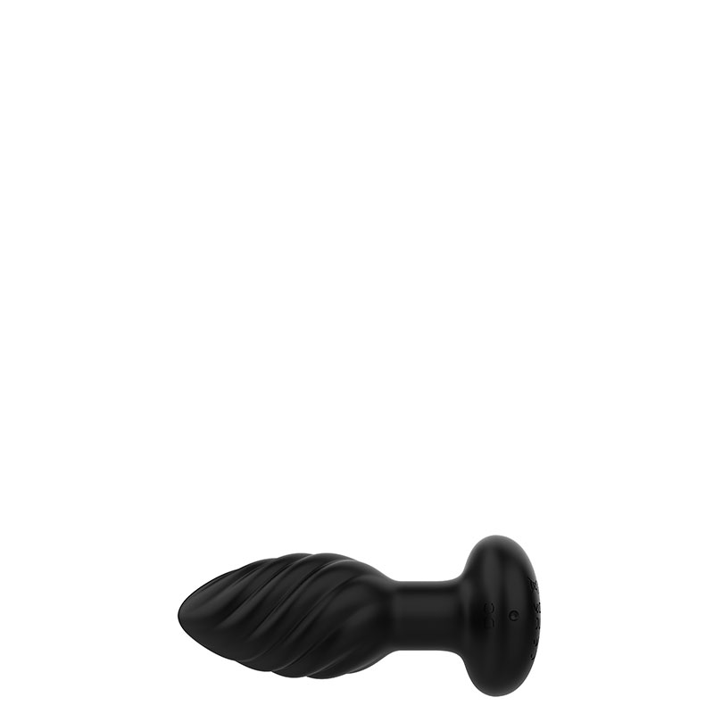 Plug anal recarregável com textura espiral e controle remoto. Possui 10 modos de vibração.