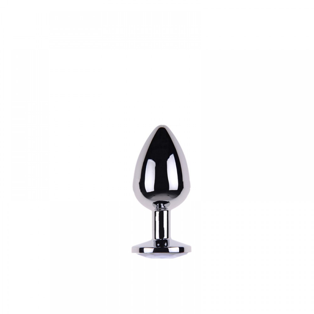 Plug anal de luxo em metal, com formato cônico, feito em alumínio fundido e polido a mão, possui em sua base uma pedra lapidada que lembra um diamante colorido,