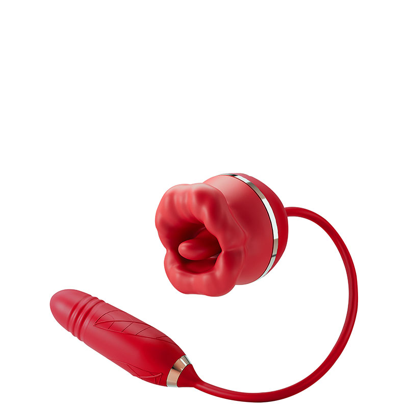 Vibrador recarregável duplo formato boca e penetrador com movimentos de vai e vem. Possui 5 modos de vibração e 3 modos de sucção.