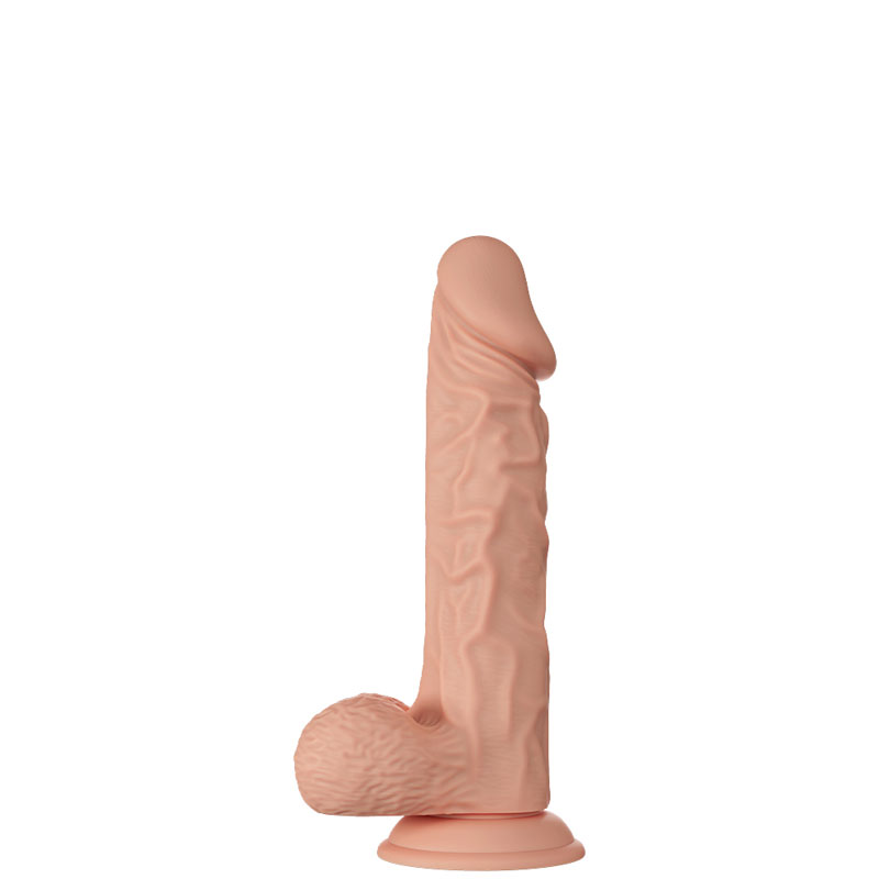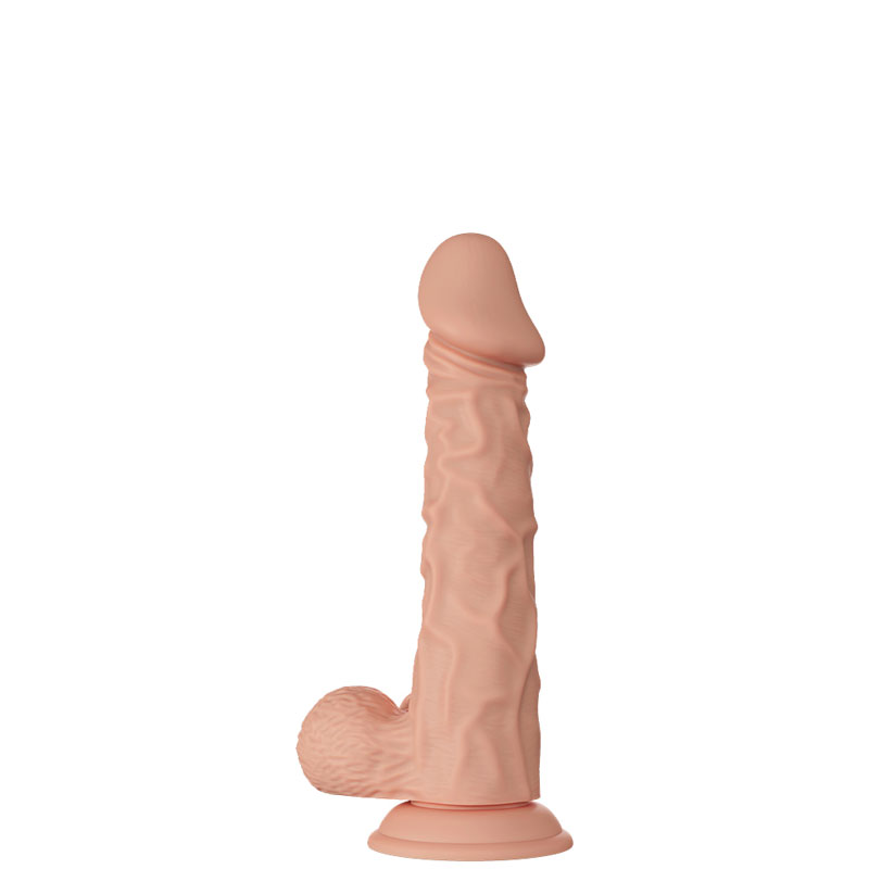 Pênis realístico 24 cm, com dupla densidade, interior firme e pele exterior suave e maleável, possui escroto, veias salientes e ventosa.