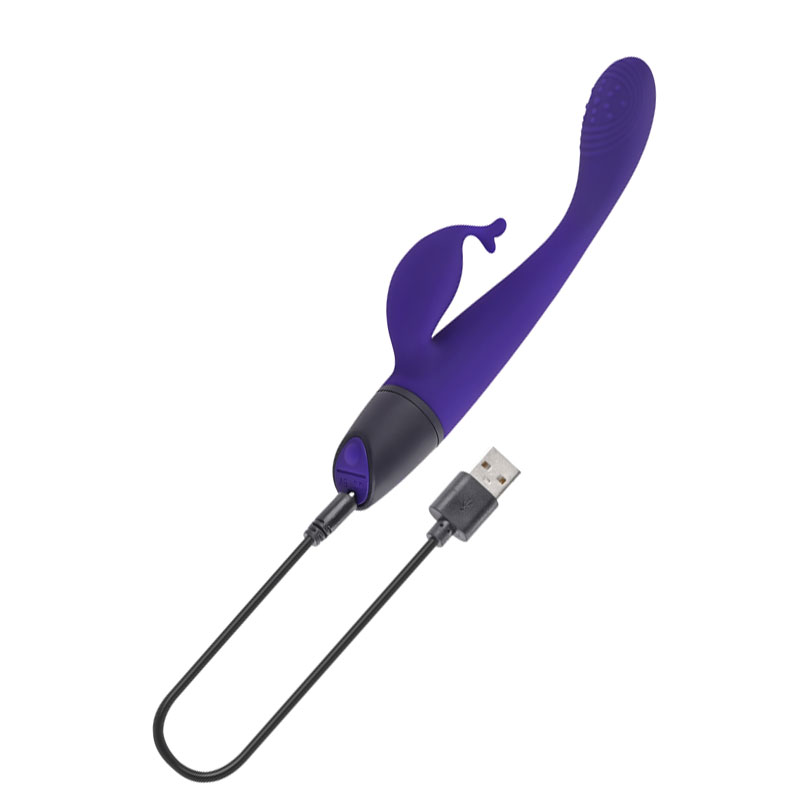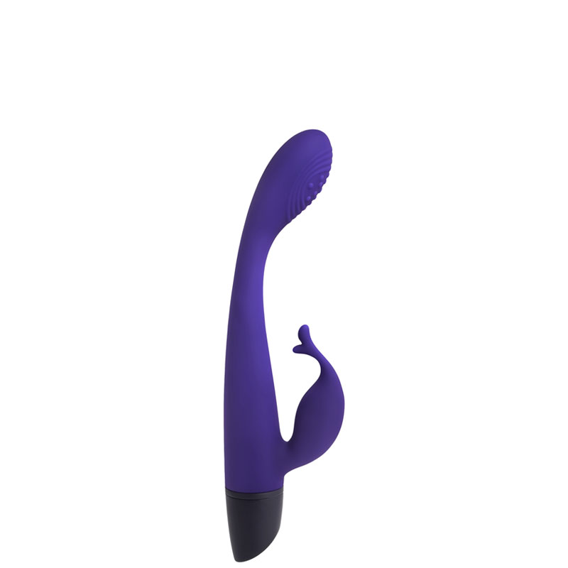 Vibrador recarregável ponto G com estimulador clitoriano. Possui 10 modos de vibração.