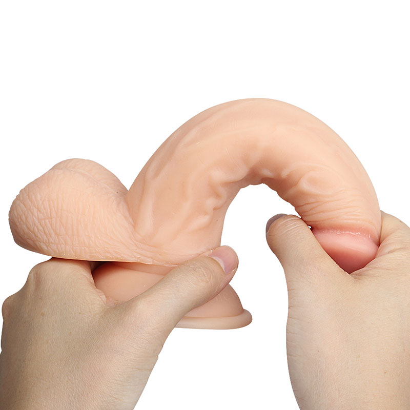 Pênis realístico com ventosa, possui escroto, veias e glande.