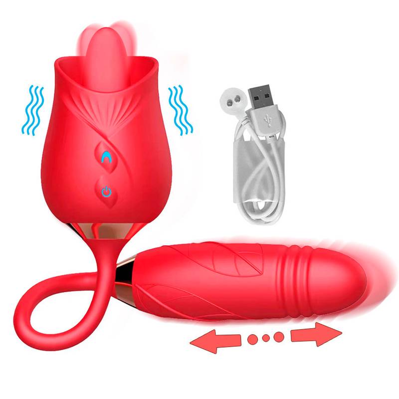 Vibrador com Língua em formado de Flor - Estimulador Sobe e desce - Recarga USB -