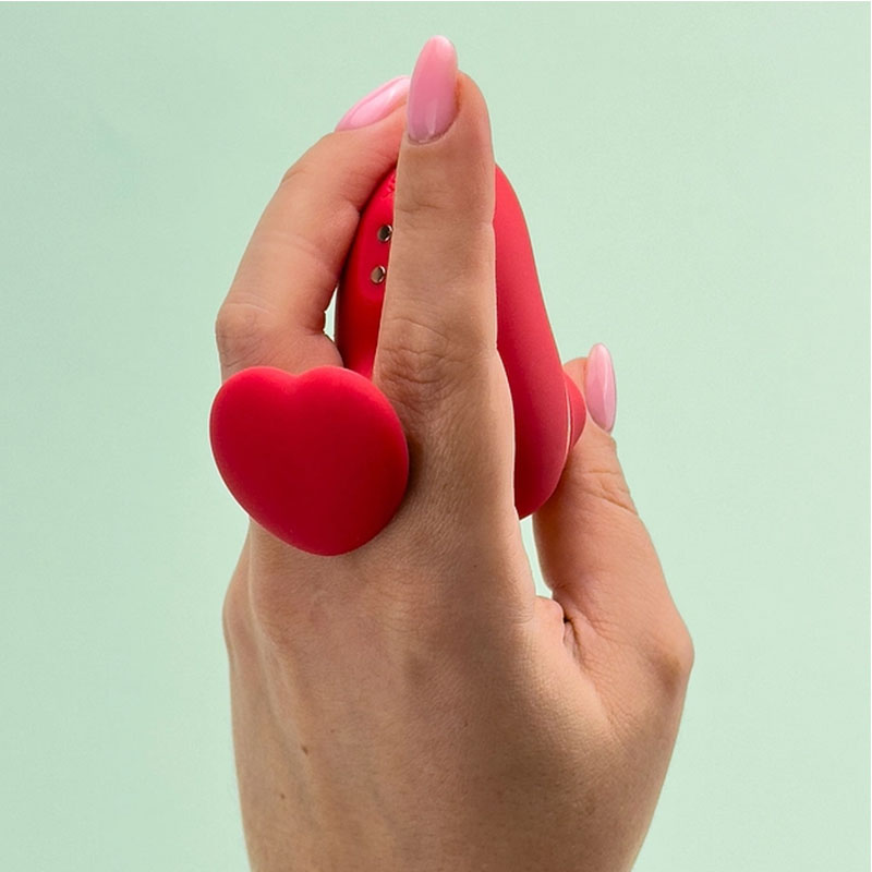 Estimulador clitoriano recarregável com apoio traseiro para encaixe dos dedos. Possui 10 modos de ondas de pressão.