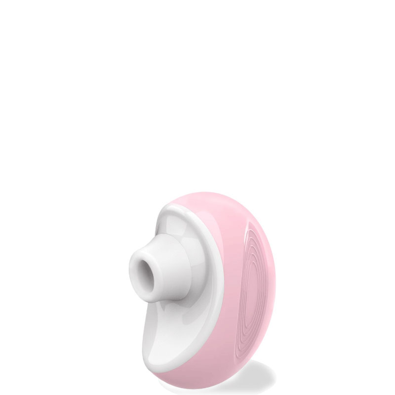 Mini estimulador feminino com ondas de pressão recarregável, com estojo smart que permite carregar a bateria por meio de contato. Possui 5 modos de ondas de pressão.
