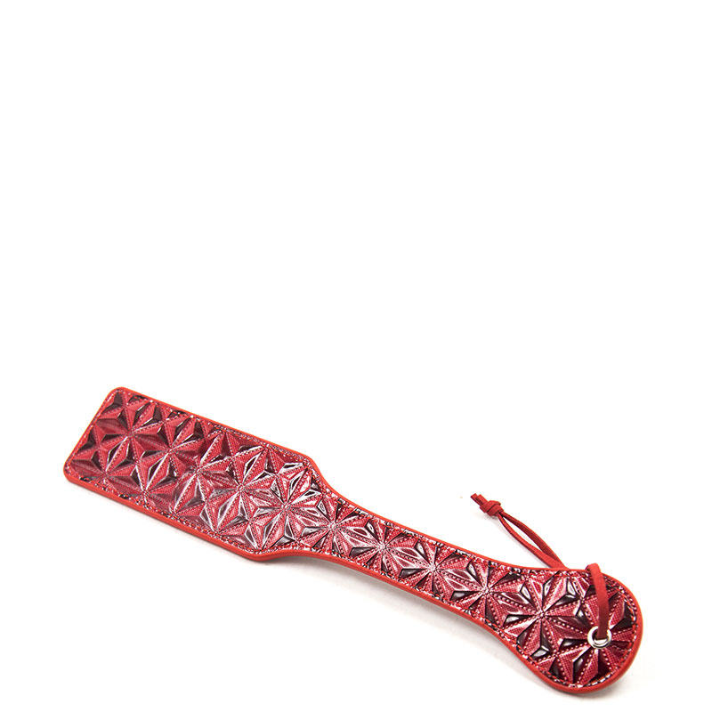 Palmatória com acabamento brilhante em alto relevo e alça para punho.