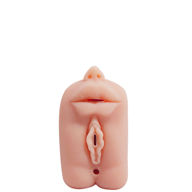 Masturbador com 3 orifícios: boca, vagina e ânus com túnel de penetração texturizado.